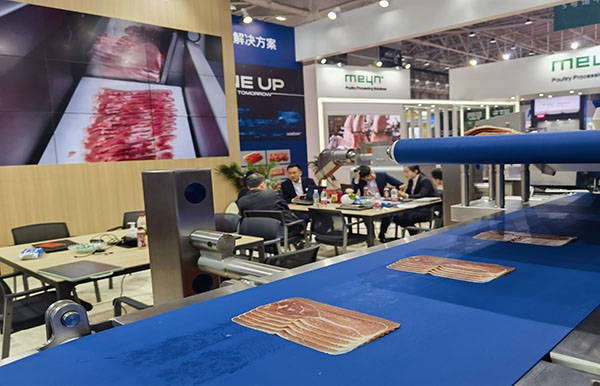 展會(huì)期間,我司展出了眾多設(shè)備:德國(guó)Weber切片線, 德國(guó)Kolbe鋸骨機(jī)K430S,德國(guó)MHS砍排切片機(jī)70-25KM,比利時(shí)FAM凍肉切丁切絲機(jī)CMD.2和加拿大POSS骨肉分離機(jī)Promax 3000。展會(huì)期間,站臺(tái)觀眾絡(luò)繹不絕,我們更是在展會(huì)現(xiàn)場(chǎng)為客戶進(jìn)行試切演示,設(shè)備及演示紛紛吸引了行業(yè)內(nèi)的眾多客戶。