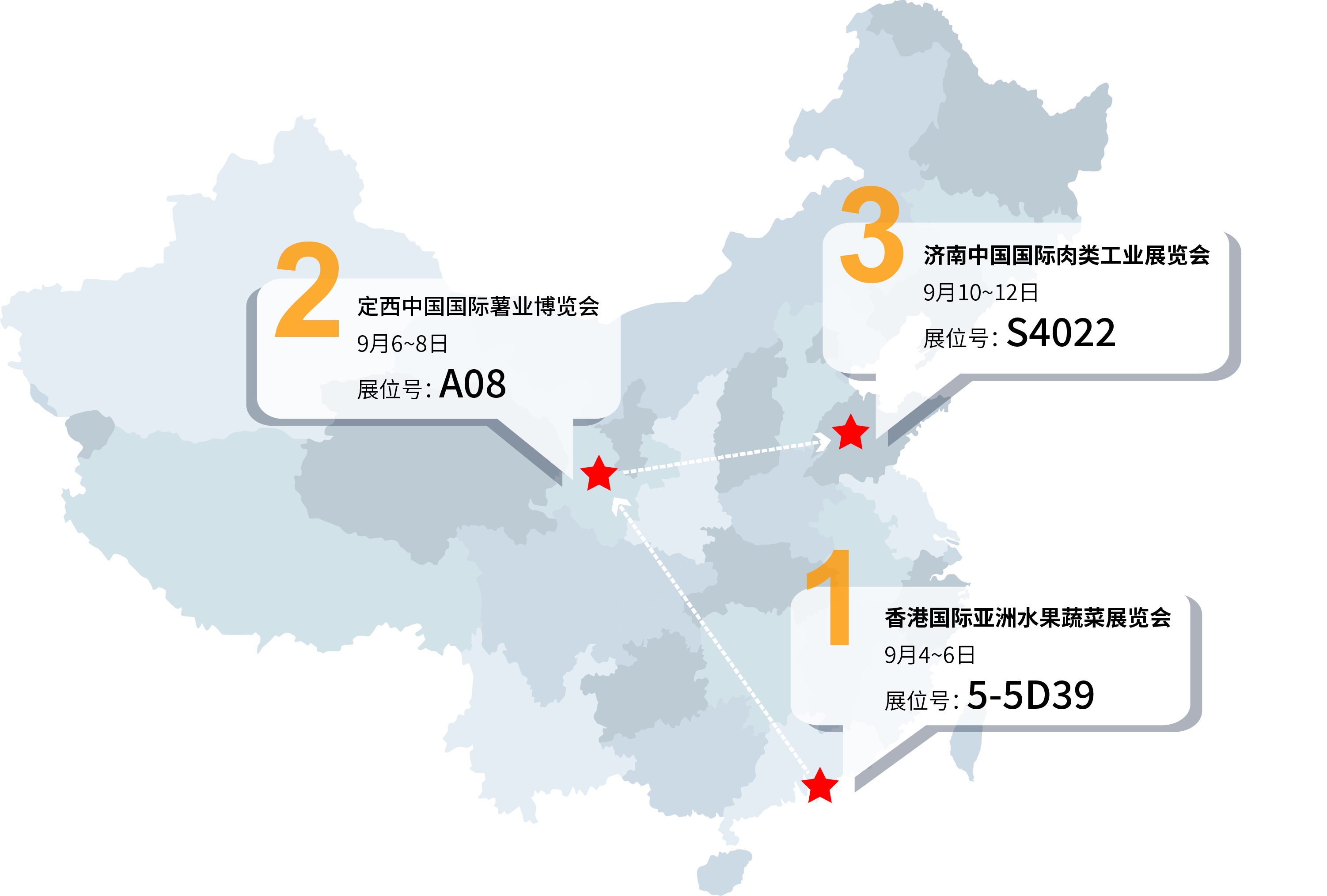 2024年9月,朗諾將先后在中國香港、甘肅定西、山東濟南三地參加食品機械行業(yè)盛會,屆時朗諾將攜帶多臺設(shè)備參展。
