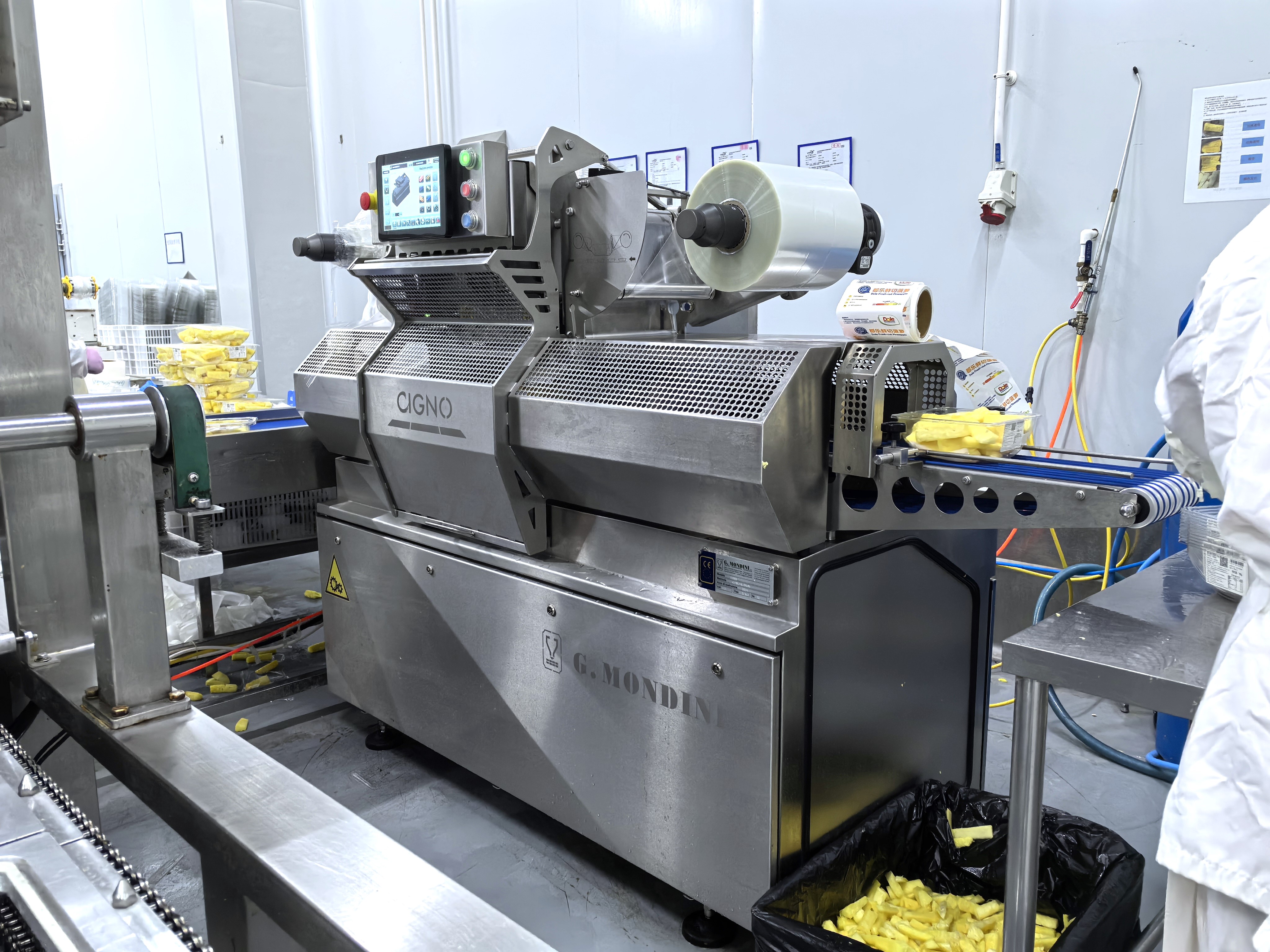 該生產(chǎn)線由ABL AP15去皮機(jī)、ABL GTF切割機(jī)、MONDINI Cigno包裝機(jī)、揀選輸送機(jī)等設(shè)備構(gòu)成,主要用于鳳梨、哈密瓜、柚子等的去頭尾、去皮、去芯及切條切塊等。結(jié)果顯示,出品率遠(yuǎn)高于手工去皮,為企業(yè)提升生產(chǎn)效率的同時(shí),有效降低了企業(yè)生產(chǎn)成本。